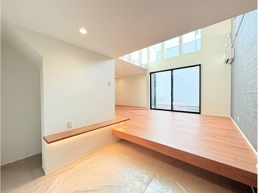 駅から徒歩6分、23.3帖の吹き抜けリビングが際立つ建築美の家。