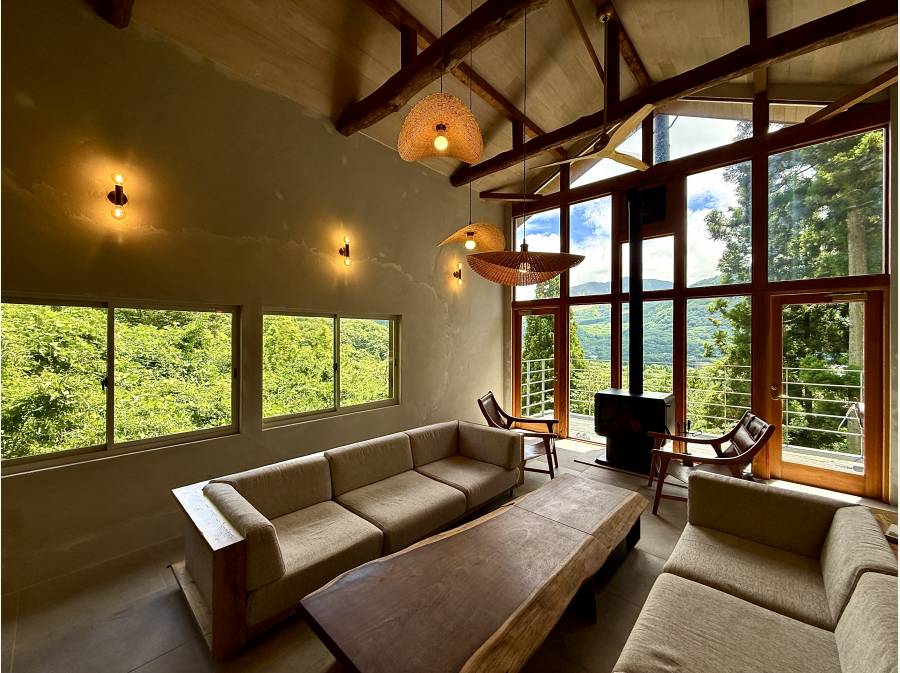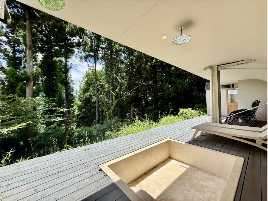 2023年5月には建物全体の改修工事を実施済み。広々としたウッドデッキテラスには、プライベートプールを設置。空と山々に囲まれた空間で、季節の風を感じながらゆったりとした時間をお楽しみいただけます。