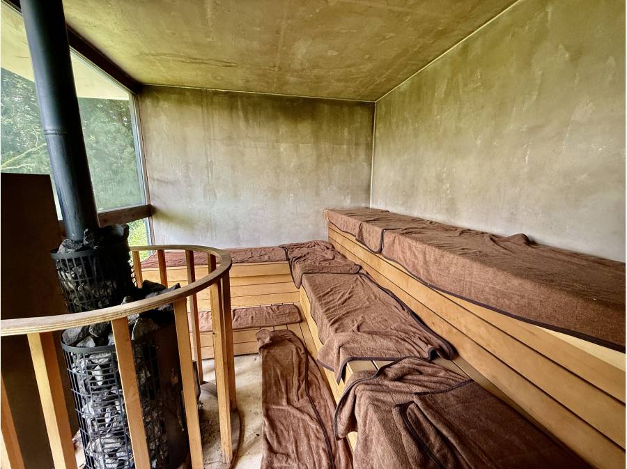また、リラクゼーションを極めたサウナも設置され、心身ともにくつろげるひとときを提供します。さらに、温泉の利用も可能(※別途申込要)で、箱根の名湯を邸宅で堪能できるのも魅力です。