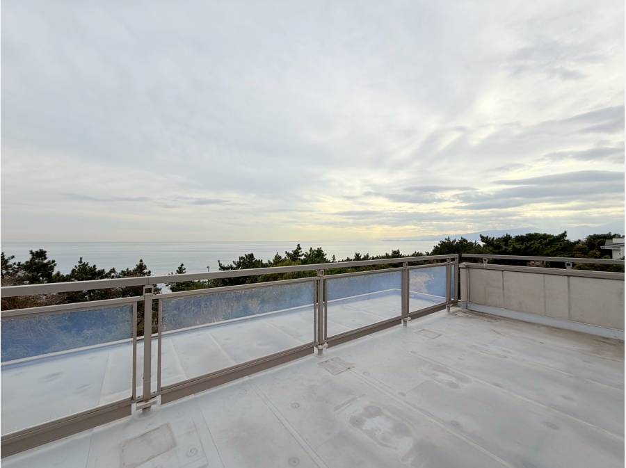 ルーフバルコニーに出ると、広がる水平線と輝く海の景色が目の前に。天候が良い日には、雄大な富士山の姿もご覧いただけます。
