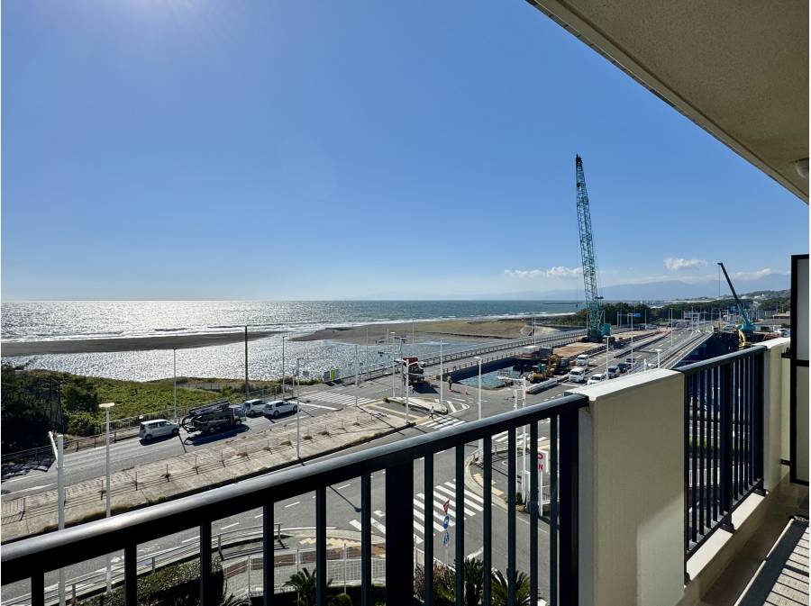 南向きのバルコニーからは、国道越しに広がる美しい海が眺められ、リビングダイニングキッチンからも開けたオーシャンビューを楽しめます。
