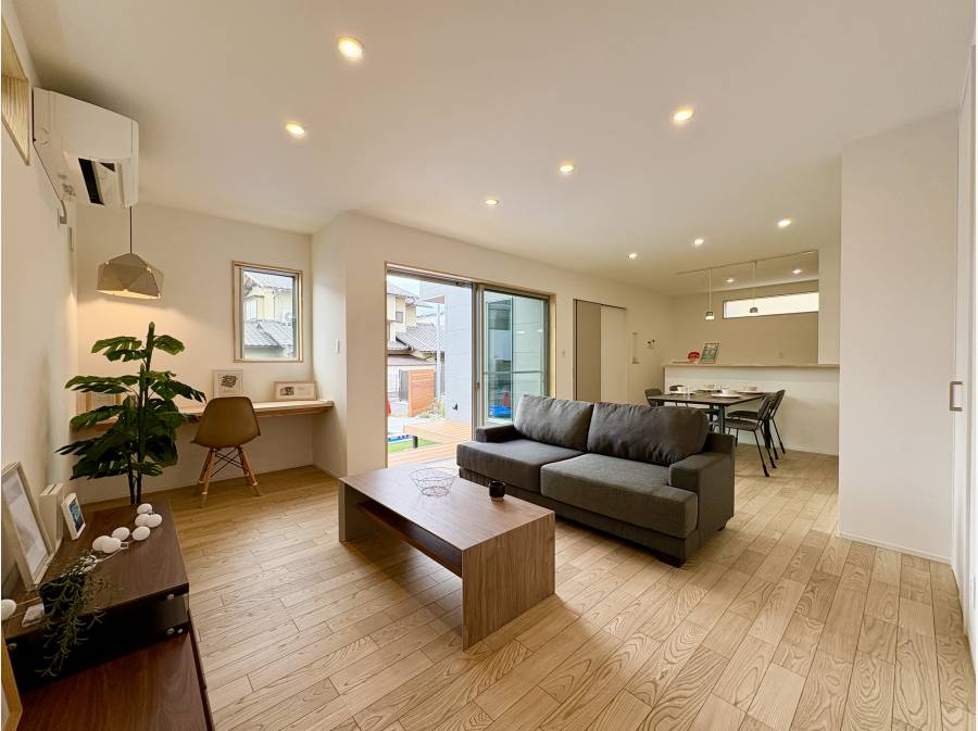陽当たりの良い新築邸宅!広々LDKとウッドデッキで家族時間を楽しめます。駐車3台可能で海に近い暮らしを満喫!