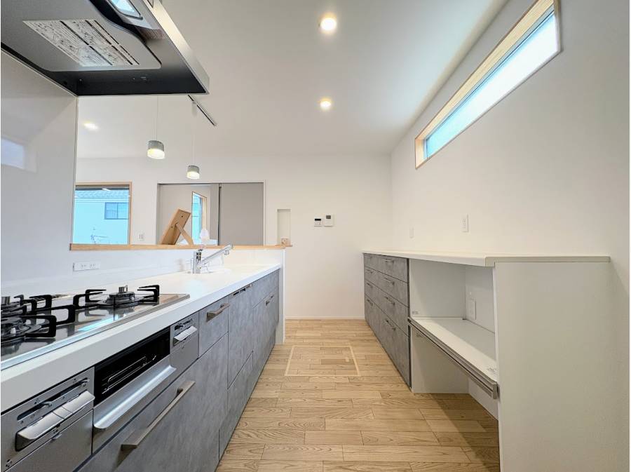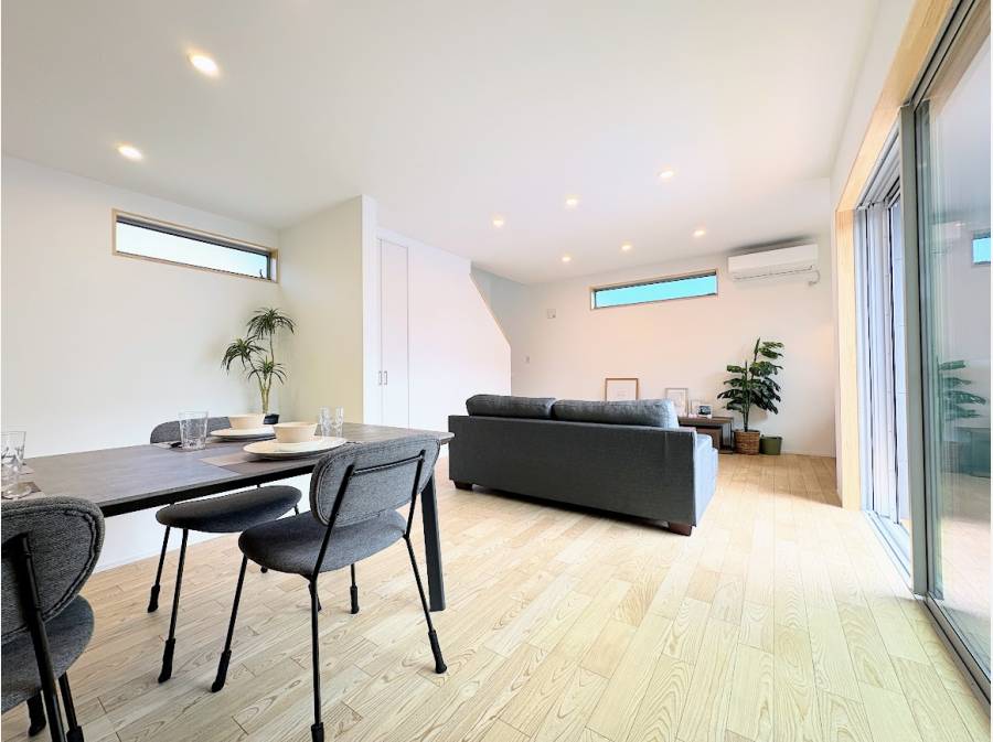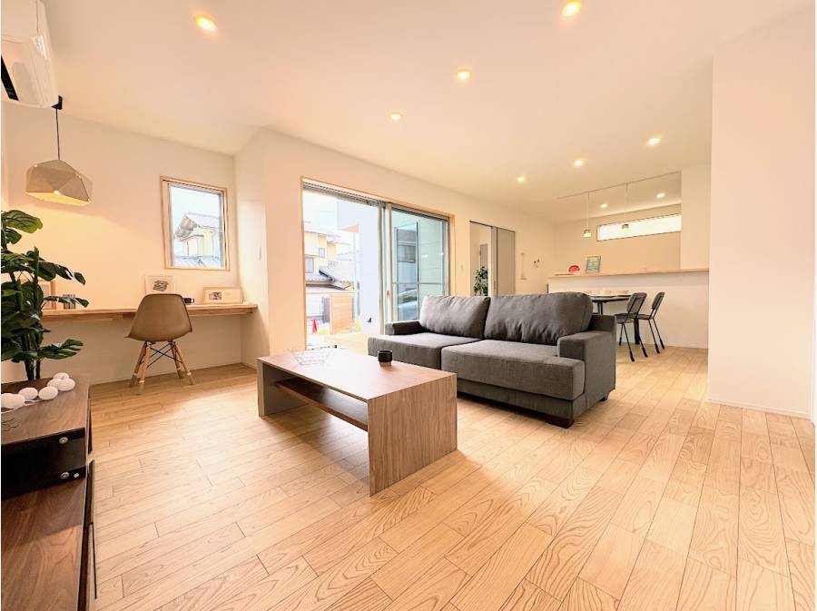 室内は、約19.75帖の広々としたLDKと、隣接する約2.25帖の畳スペースが一体となった設計。家族が自然と集まり、絆が深まる温かいリビング空間が広がります。