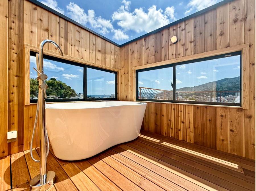海と緑の大パノラマに浮かぶようなジャグジー付きルーフバルコニー