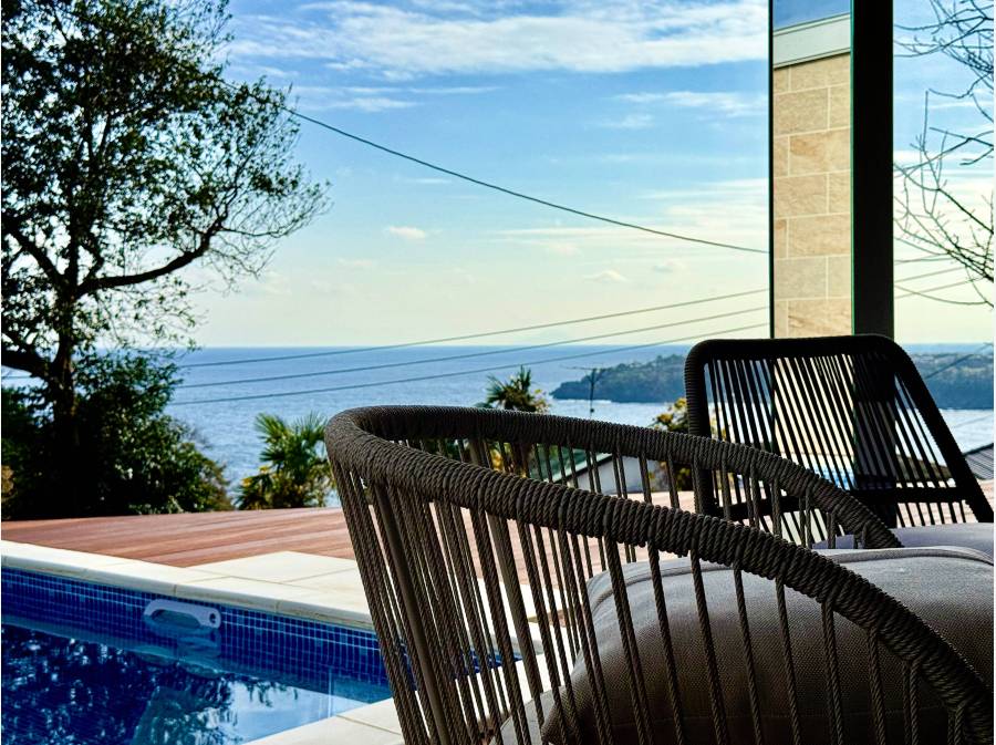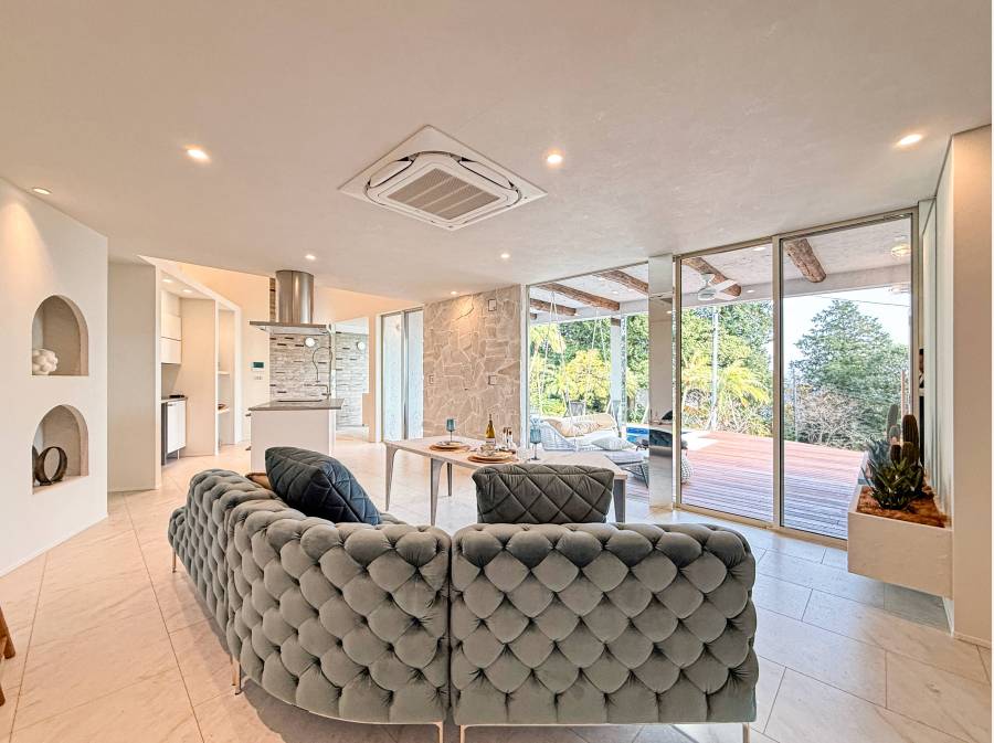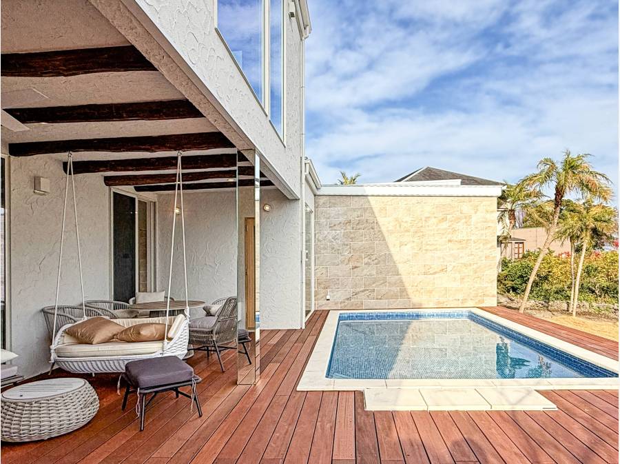 今回ご紹介の物件は、「オーシャンビュー」「ウッドデッキテラス&プール」「サウナルーム」など素敵な仕様が多く施され、