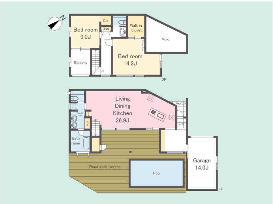 26.9帖もあるワイドスパンのLDKとそこから繋がるウッドデッキテラス、プライベートプールから素敵眺望を愉しみながら優雅な時間をお過ごし頂けます。