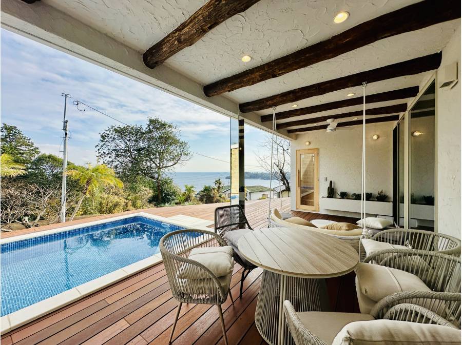 相模湾を見渡す東伊豆の高台に位置し、四季折々の自然美や豊かな温泉、そして洗練された別荘文化が魅力のリゾート地です。