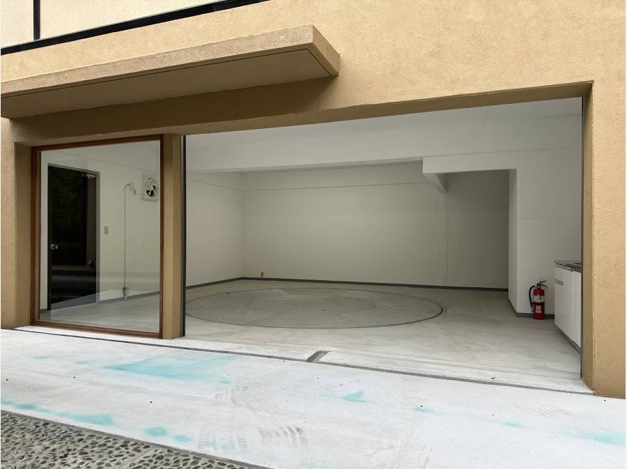 大切なお車は屋内にお停め頂け、敷地内で切り返して、芝生を傷めないように、ターンテーブルにて方向転換が可能