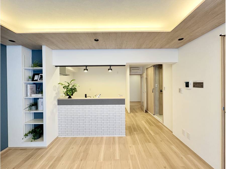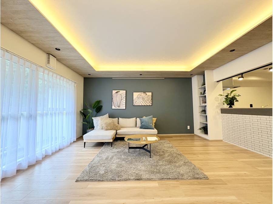 特にLDKに設置された照明が印象的で、リビングを明るく、落ち着きと上品さを感じさせる空間に仕上がっています。