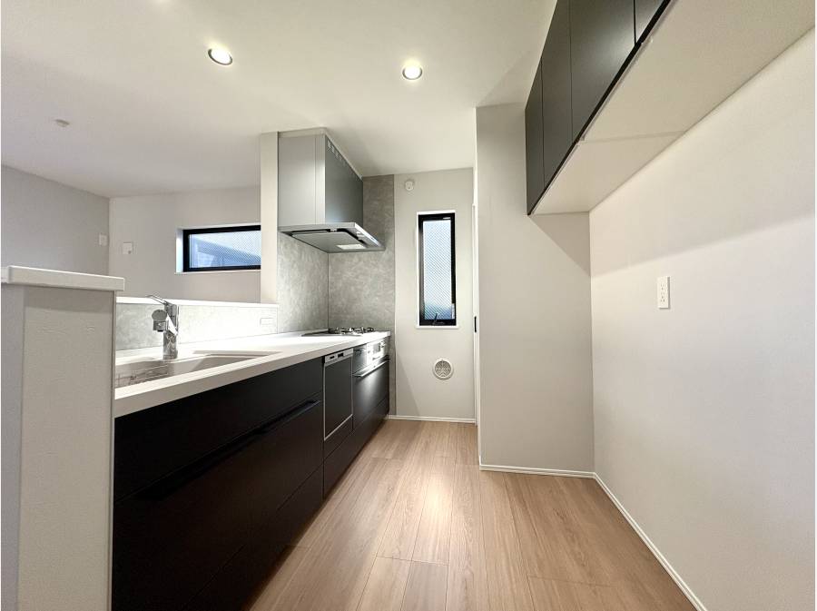 キッチンからも家族の様子が見えやすく、日常の会話が自然に続いていくような心地よさがあります。