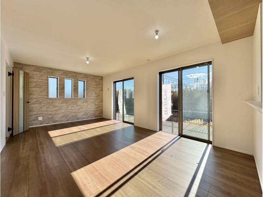 リビングに入った瞬間、床に伸びる陽だまりが、自然と深呼吸を誘います。