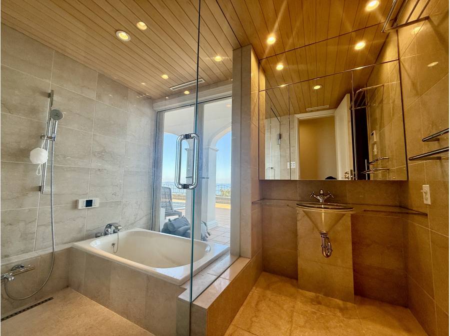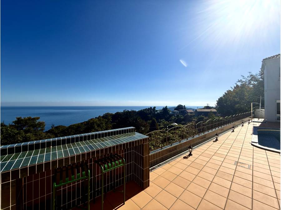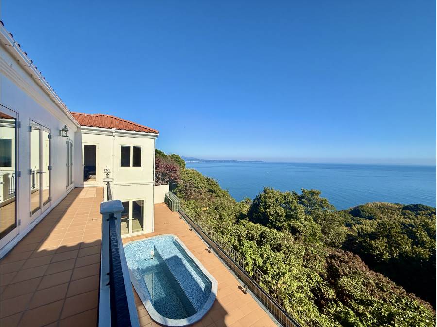 相模湾に向かって大きく開いたプール付きのオーシャンビューヴィラです。
