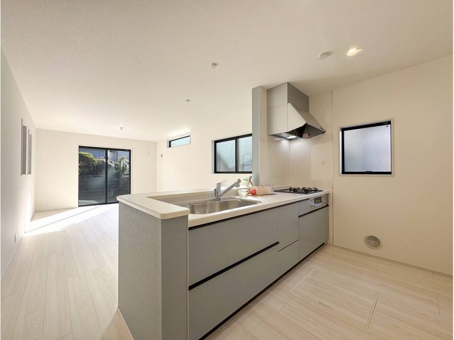 三面採光の光溢れるリビング、さらにキッチンを中心とした快適な水周り動線など、家族みんなが過ごしやすさを感じられるでしょう。