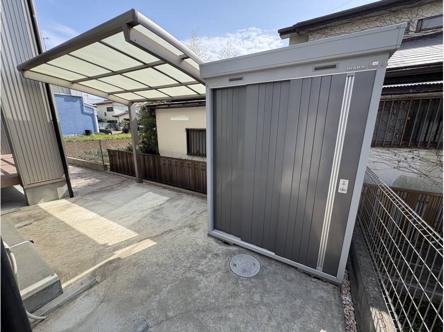 リノベーション済みの5LDK物件。静かな住宅街で、車2台分の駐車スペースやバイク、自転車置き場も備えています。