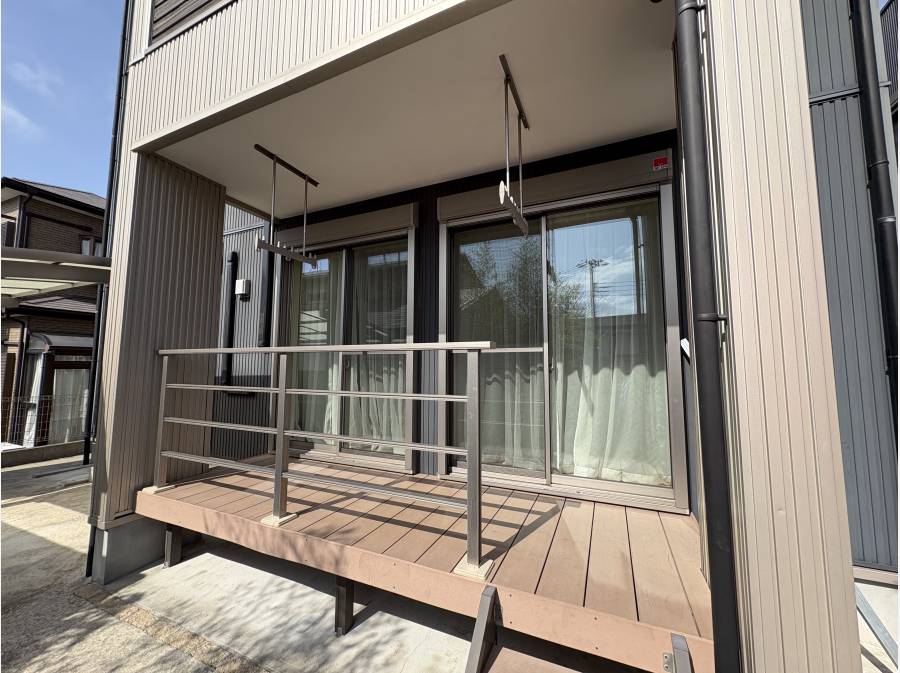 日当たりが良好で、天井付きのベランダで洗濯物を干せるほか、室内干し専用のお部屋も備わっています。