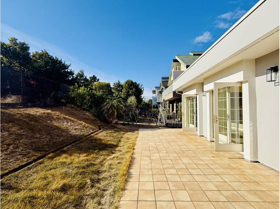 その中でも、この場所は緑地協定により自然が守られ、電柱のない広々とした空が広がる特別な一角に位置しています。
