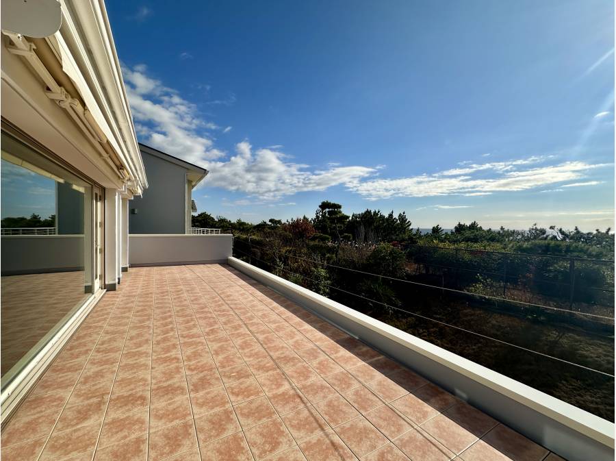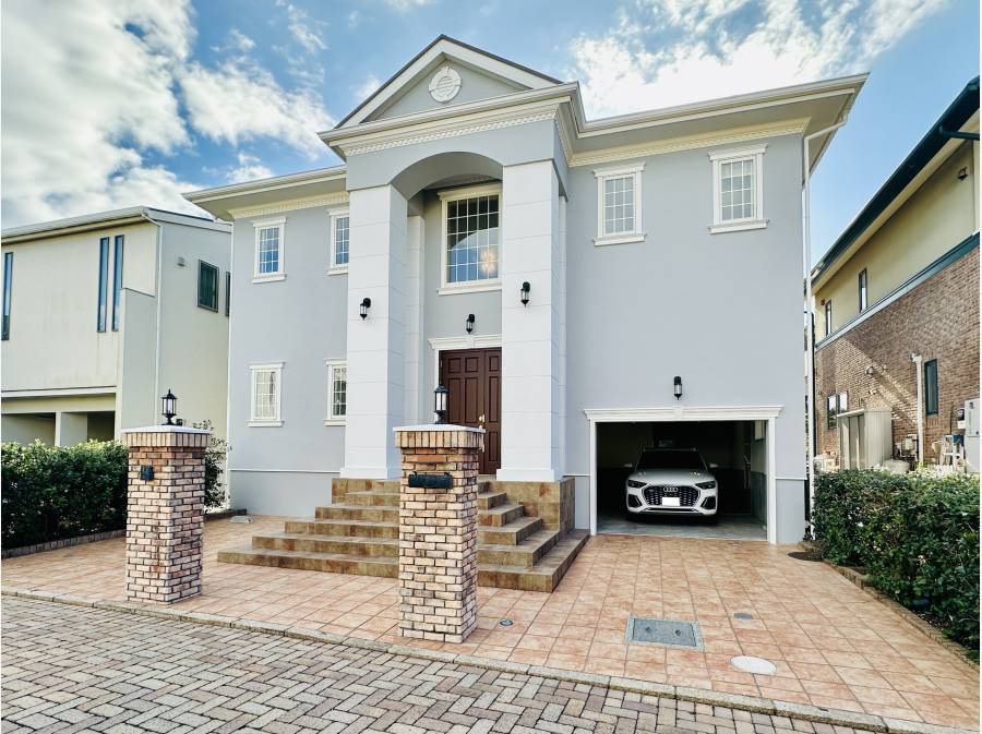 大磯松陰に立地する広々としたオーシャンビュー邸宅。車はビルトインガレージを含めて3台駐車可能。日常を忘れ、心安らぐ時間を過ごせます。