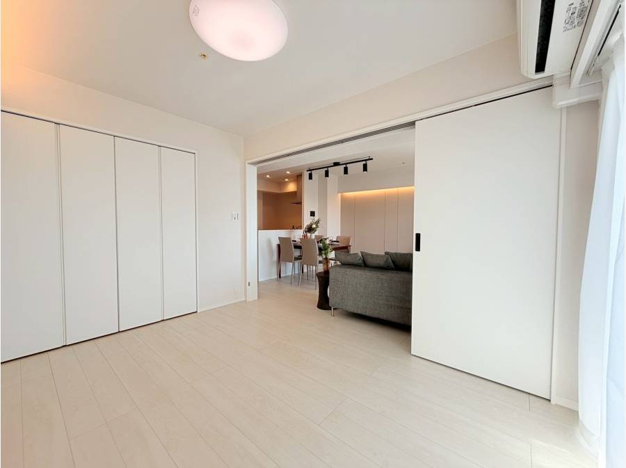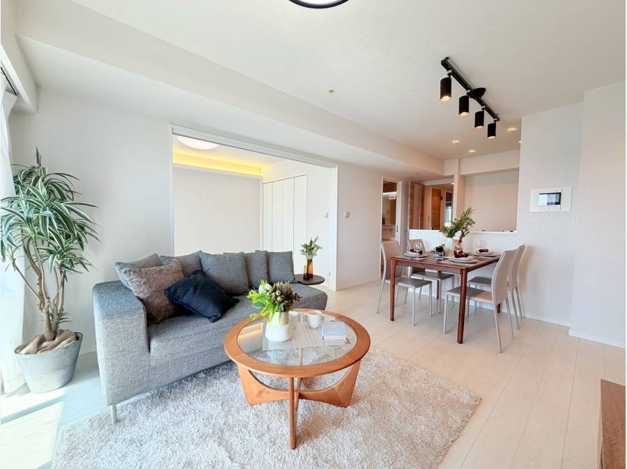 LDKは13.5帖、隣の6.3帖のお部屋とつなげると約19.8帖の広々とした空間に変わります。南向きの住戸で、朝からやさしい日差しが降り注ぎ、心地よい時間を過ごせます。