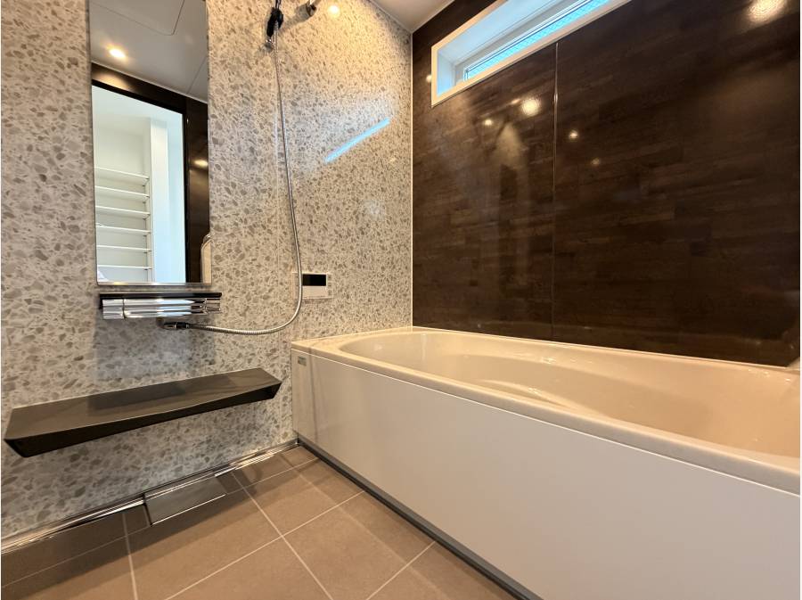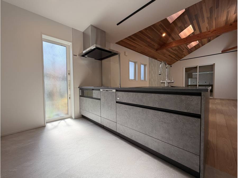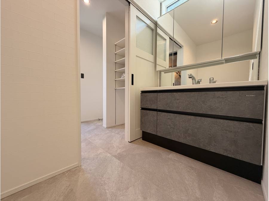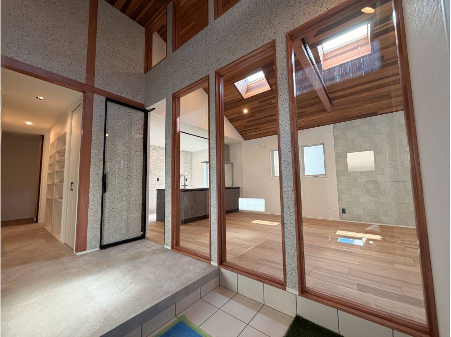 玄関横には大型ストレージを設け、収納力も充実。室内はスケルトンデザインを取り入れたスタイリッシュな仕様となっており、細部までこだわった住まいです。