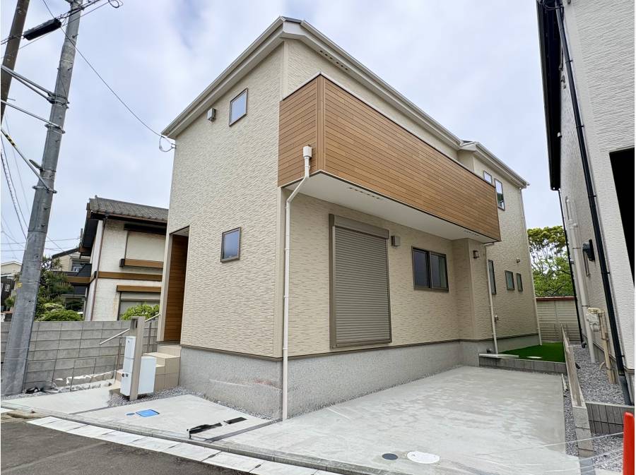 平塚市虹ヶ浜に誕生した、湘南の海を感じることができるスタイリッシュなデザイン邸宅です。木目の温もりが広がる空間とたっぷりの陽光が、心地よい暮らしを演出します。