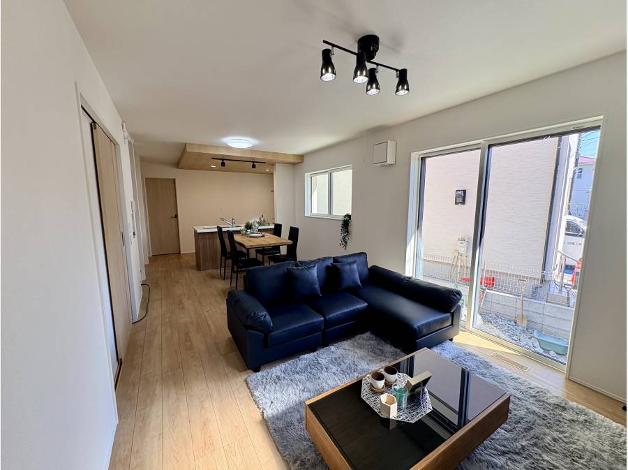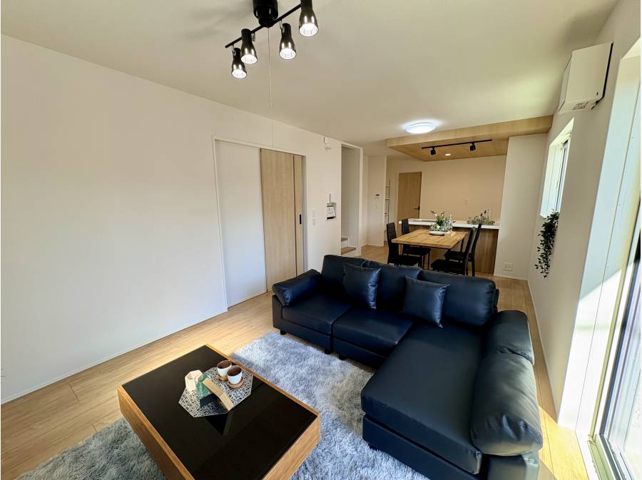 陽光が差し込む広々としたLDKに、木目の温かみが心地よい住まい。設備も充実し、ゆとりあるカースペースも魅力的です。