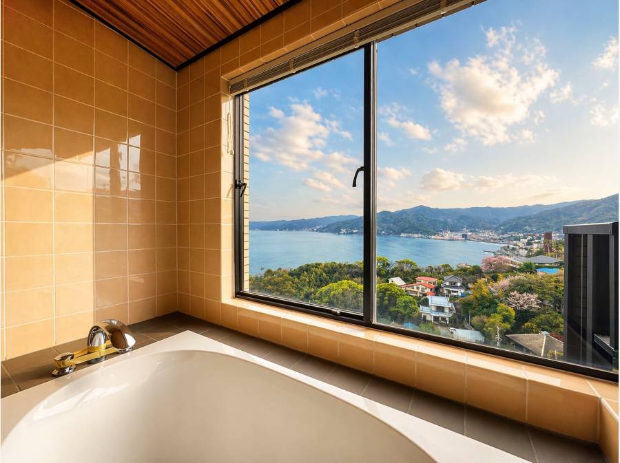 相模湾を望む高台に位置し、海と山の景色を日常に取り込む一室。日常の喧騒がふっと遠のき、穏やかな時間が流れます。