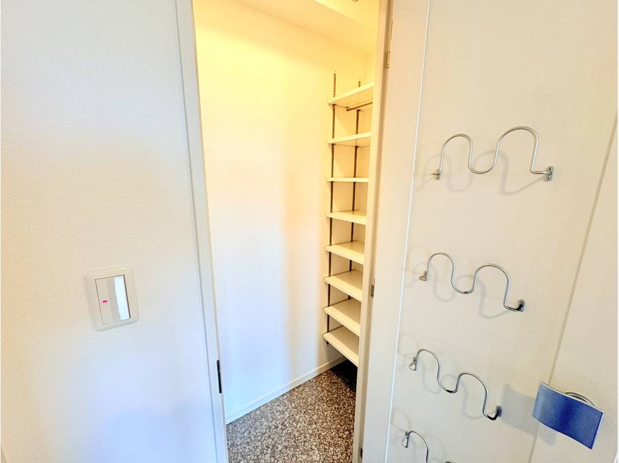 主寝室は約14.1帖のゆとりある広さで、ウォークインクローゼットを完備。玄関にはシューズインクローゼットがあり、ご家族の荷物をすっきりと収納できます。