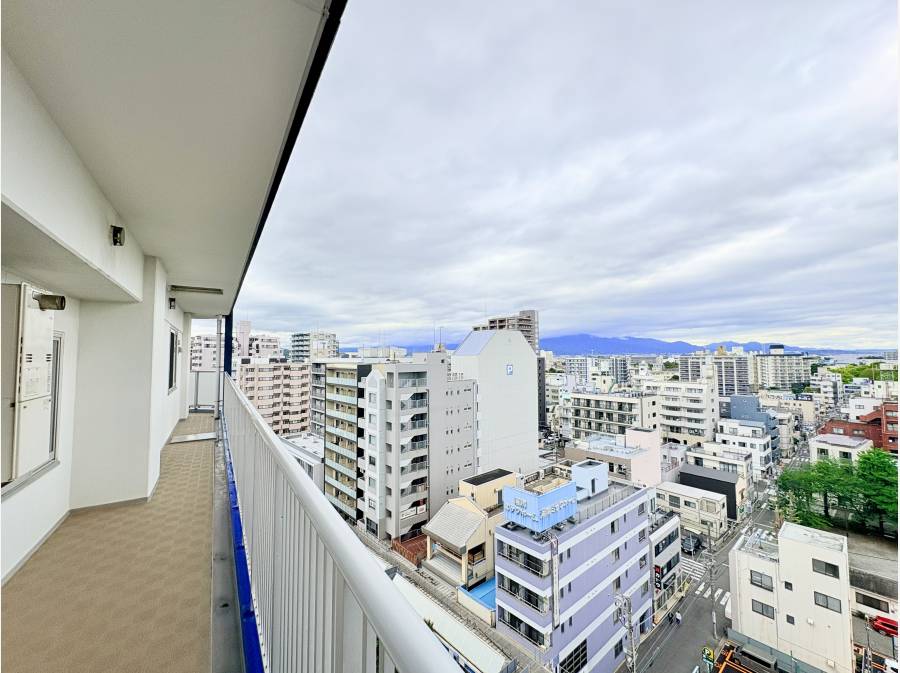 9階の角部屋で眺望が良く、約27平米の広いバルコニーから開放的な景色を楽しめます。