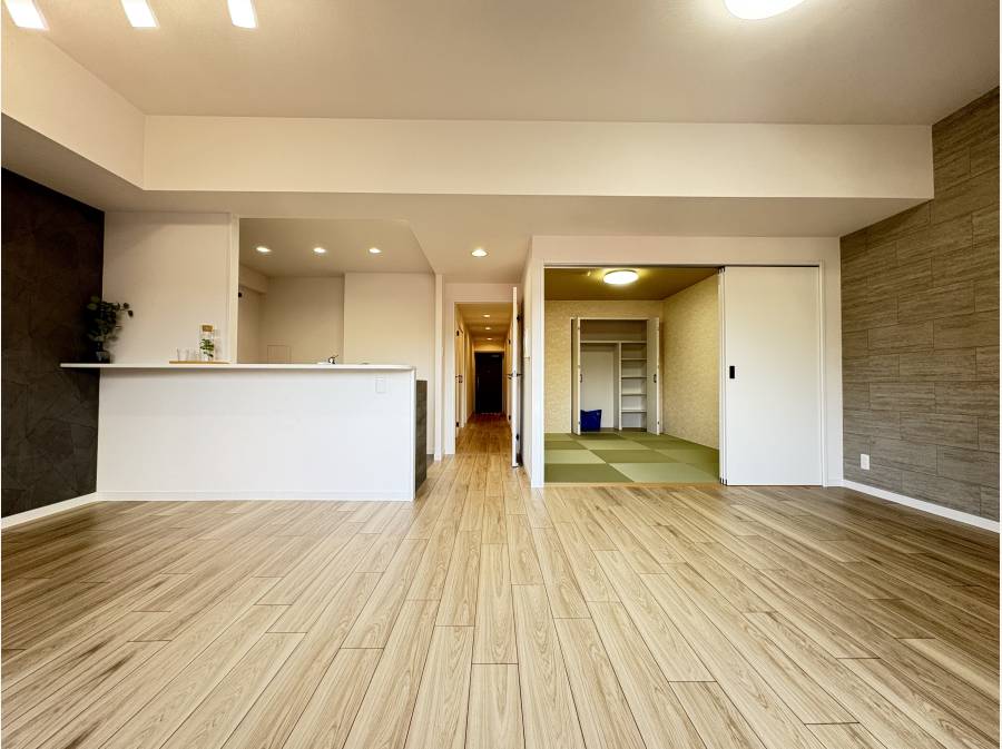 内装はフルリフォーム済みで、システムキッチンやユニットバス、トイレ、洗面化粧台などの水回り設備はすべて新品。和室も新たに設置され、モダンで快適な住まいへと生まれ変わりました。