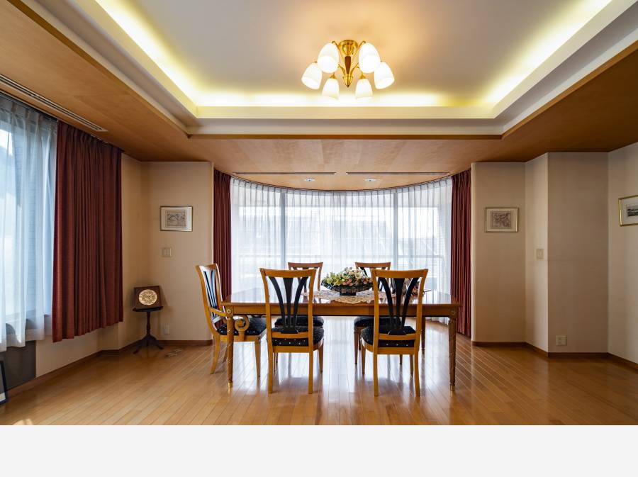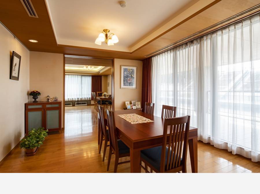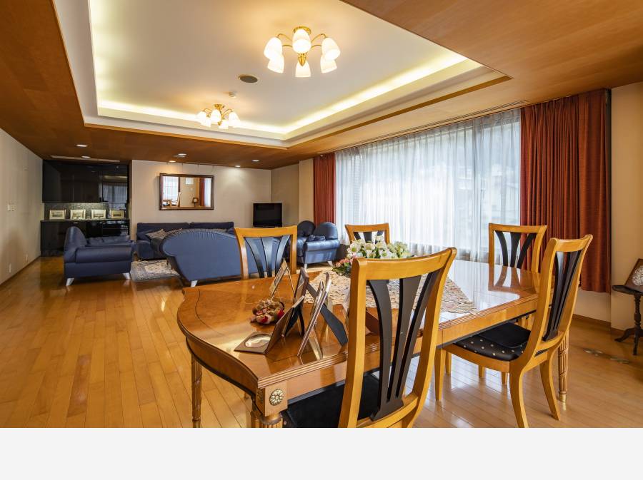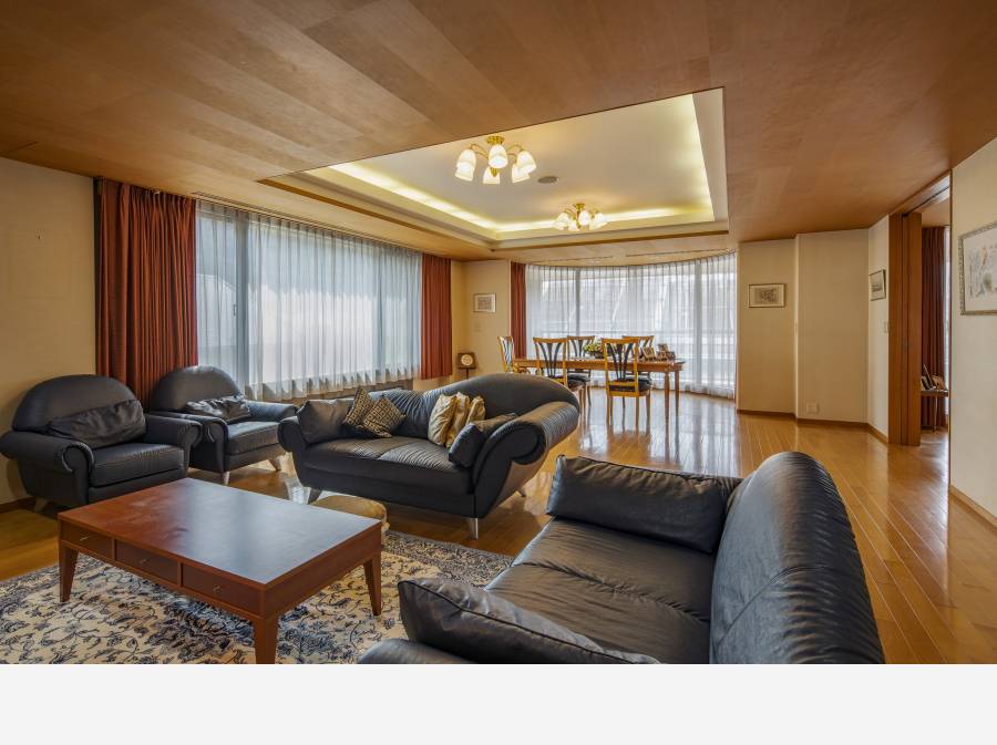 周囲のマンションとは一線を画す高級感あふれる造りが魅力です。1フロア1住戸の設計で、ゆとりある264㎡の広さを誇り、開放感とプライバシーを両立しています。