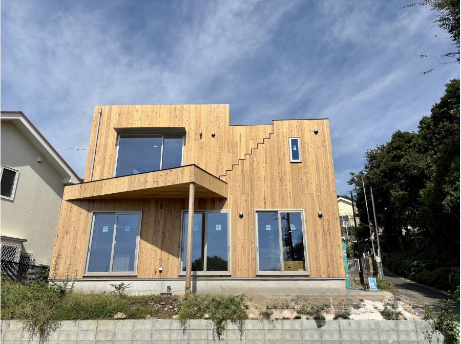 外観は木目と植栽を組み合わせたモダンなデザインで、葉山の自然と調和する雰囲気を纏います。