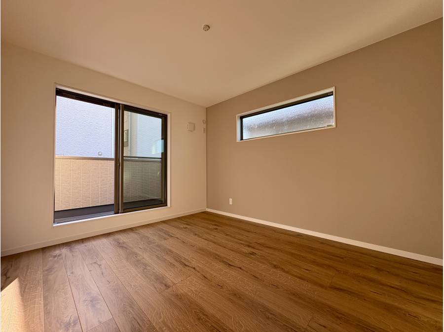 主寝室は約7帖の広さを確保し、バルコニーへとつながる開放的な設計。