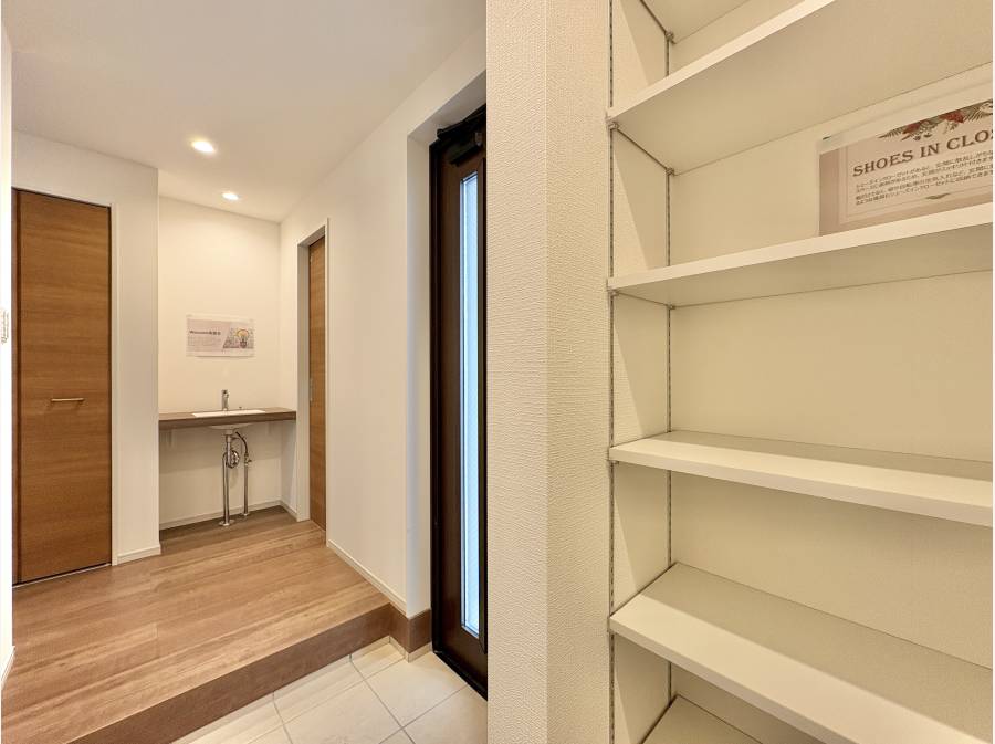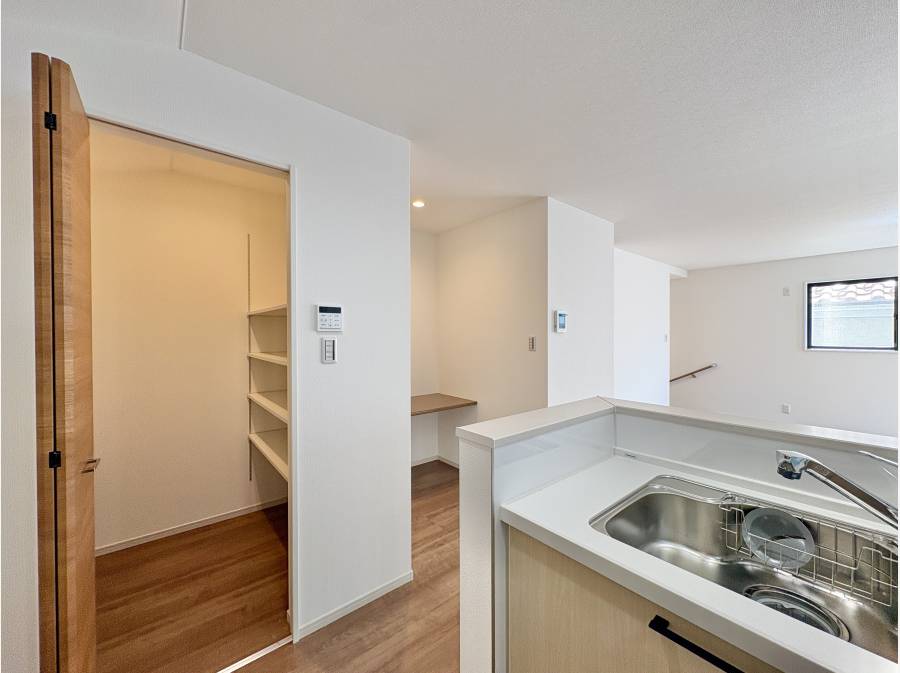 玄関にはSIC、各居室には、クローゼット、WICも完備、キッチンにはパントリーを設置、収納が豊富な住宅になっております。