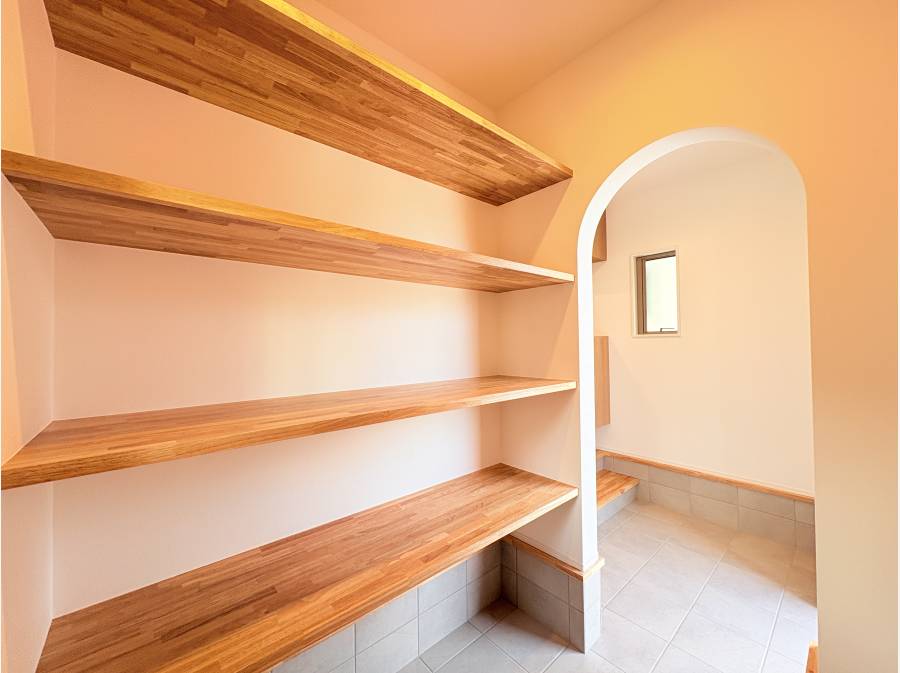 玄関ホールからゆとりを感じられる設計で、友人を招きたくなるような木の温もりを感じられる室内空間が広がります。