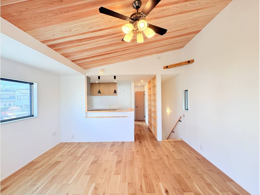 勾配天井を採用した開放的なLDK、東南向きで陽当たりの良いバルコニー、収納豊富な設備仕様も魅力のひとつです。
