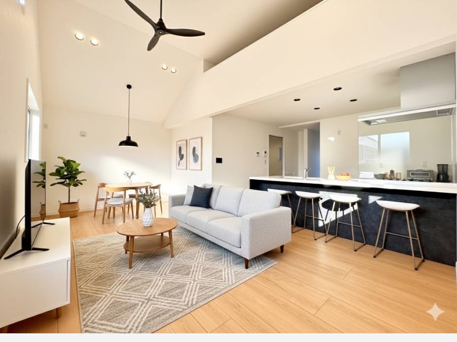 2階には上部吹き抜けの17.7帖のLDK。