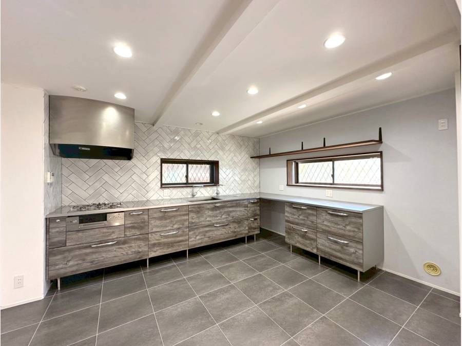 洗練されたデザインと機能的なステンレスが特徴のトーヨーキッチンが空間を引き締めます。