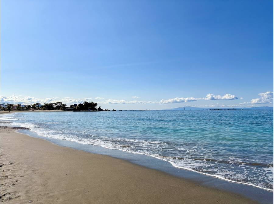 穏やかな砂浜、風光明媚な景観が広がる「森戸海岸」