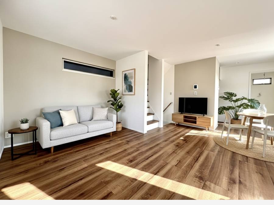 ご紹介するD号棟は、敷地内でも特にゆとりのある建物面積106.40㎡(車庫部分含む)を備えています。2階には家族が自然と集まるゆったりとしたLDKを配置し、3階の居室はすべて5.5帖以上の広さを確保しており、プライベートな時間を快適に過ごせる設計です。