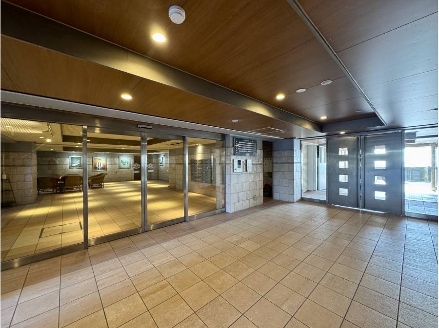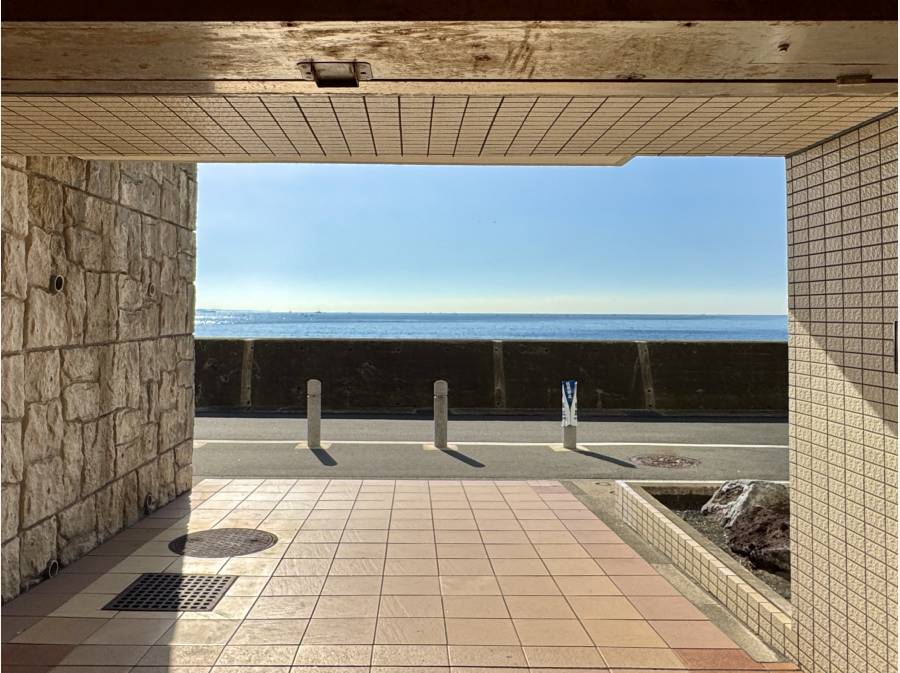 マンションエントランスのドアを開けると海が広がるため
