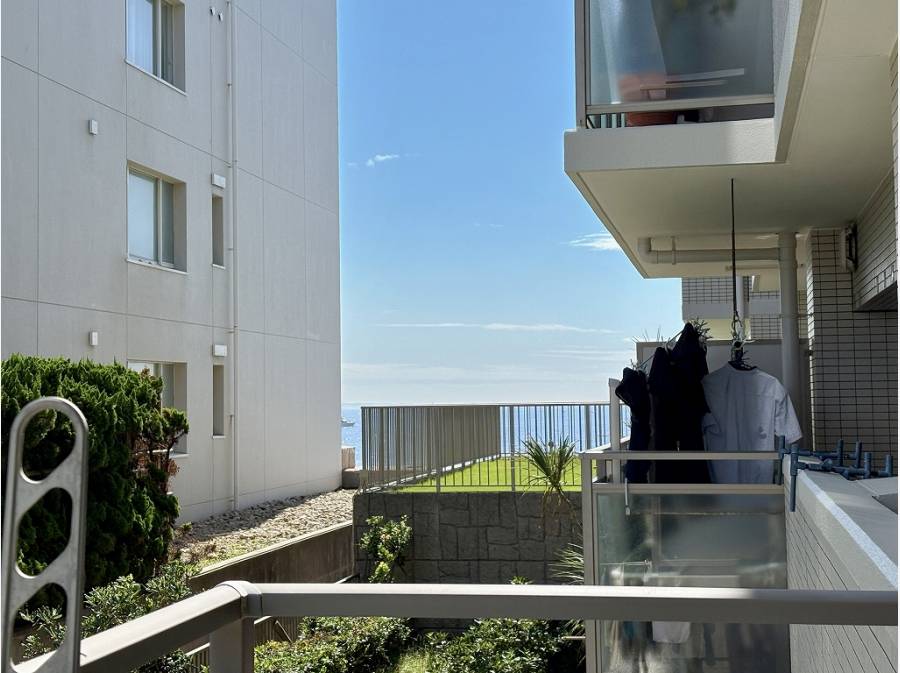 バルコニーの先には葉山の低山がぽっかり佇み、潮風に顔を向ければチラリと海のきらめきが視界に差し込みます。