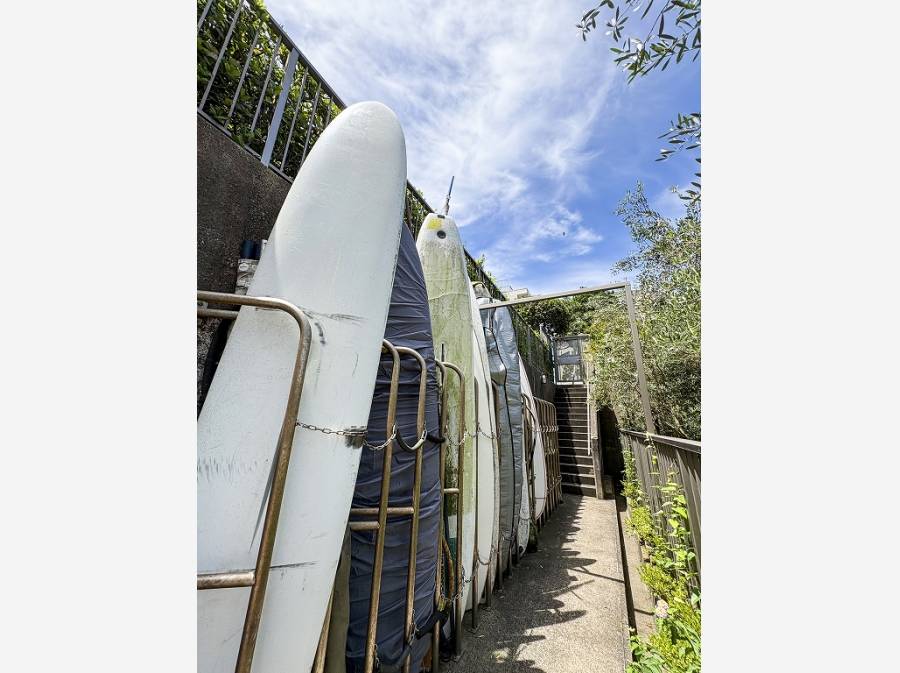 敷地内にはサーフボード置場やシャワーブースが完備され、海遊びを快適にサポート。