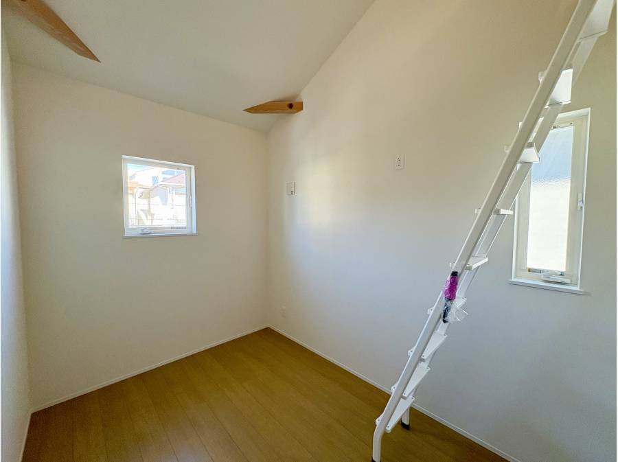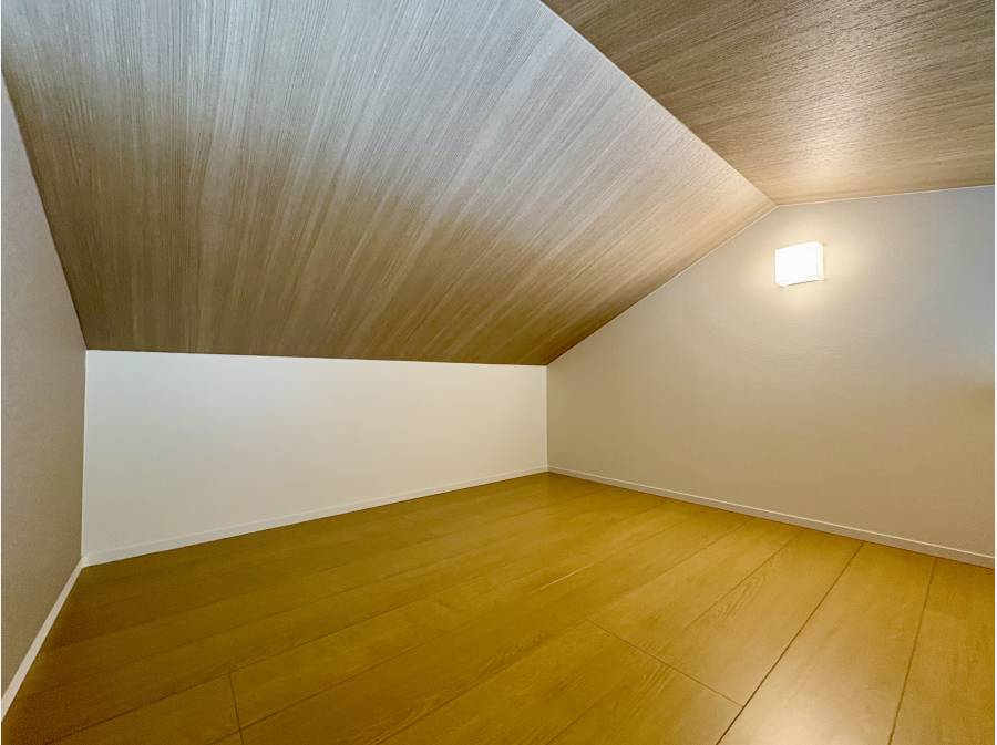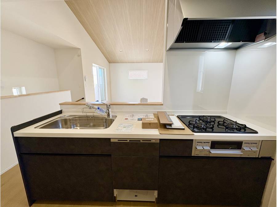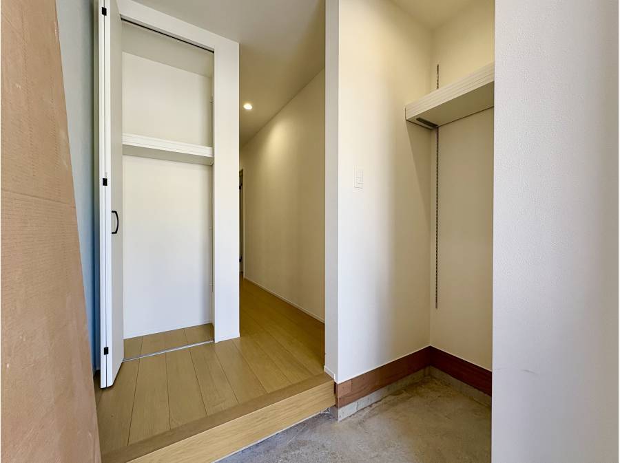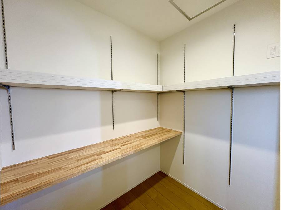 キッチン背面には約2帖分のゆとりあるパントリーを設け、生活感を抑えながらも家事動線をスムーズに。さらに、ロフトや玄関の土間収納、主寝室のウォークインクローゼットなど、収納面も充実しています。