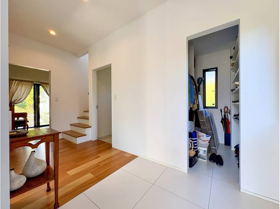 まるで海外を思わせるフラットなエントランスには大容量のシューズインクローク付き。