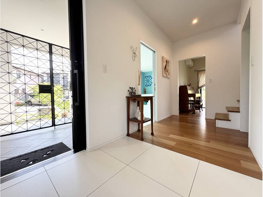 現地を訪れてきましたが、なんともオシャレで素敵な邸宅に感動しました!外観のデザインはもちろん、エントランスに入ると洗練された空間が広がり、広々とした造りが印象的です。大容量のSIC(シューズインクローゼット)があり、アウトドア用品や季節物の収納にも便利です。
