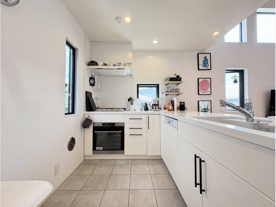 特にキッチンは、細部にわたる配慮が施されています。西側には雄大な富士山、東側には隣家の桜を楽しむことができ、季節ごとに異なる風景を味わうことができます。