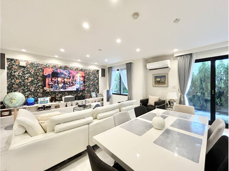 マンション内には居住者専用のプールもあり、リゾート気分を味わえます。さらに、室内はオーナー様のこだわりが随所に感じられるデザインが魅力的です。