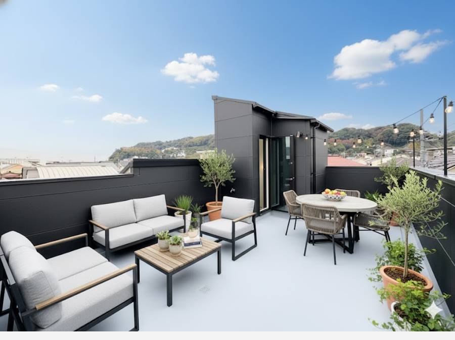 さらに、約12帖のルーフバルコニーが特別な空間を提供。逗子の自然と空を眺めながら、贅沢でくつろぎのひとときをお楽しみいただけます。