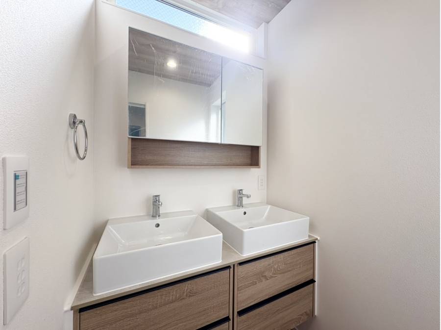 落ち着いたシックでスタイリッシュな外観に加え、4LDKの広々とした間取りが魅力的。約21.8帖の開放感のあるLDKやダブルボウルの洗面化粧台など、日々の生活を快適にする設備も整っています。