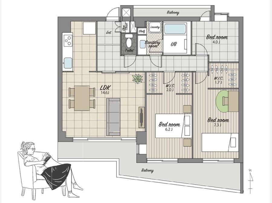 専有面積78平米超、3LDKの間取りは、ゆとりを持ちながら自分らしいライフスタイルを追求する方にぴったりです。また、ペットとの暮らしもご相談いただけます。